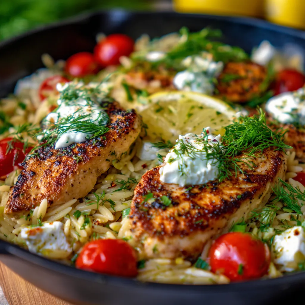 One-Pan Lemon Feta Chicken and Orzo Skillet – Easy Dinner!