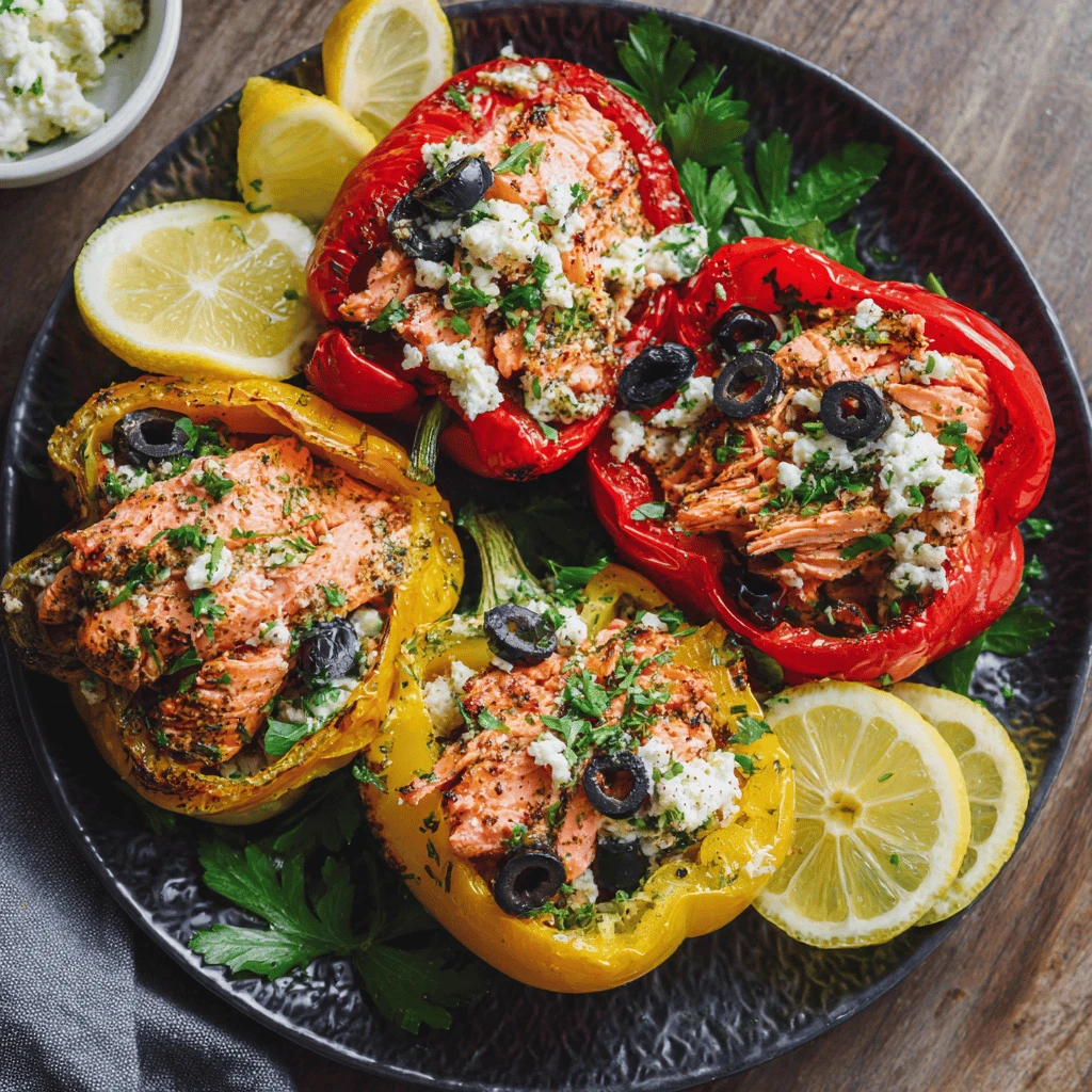 Meal Prep Mediterranean Salmon Stuffed Peppers