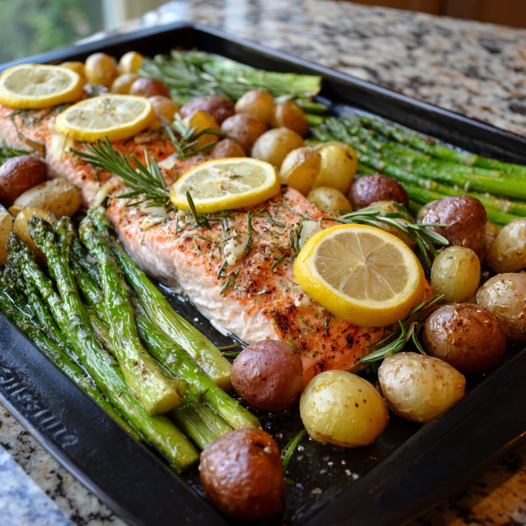 Lemon Rosemary Sheet Pan Salmon Dinner