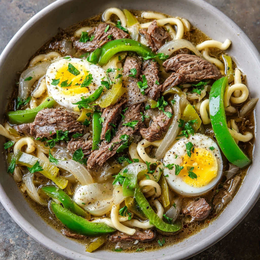 Philly Cheesesteak Pasta Soup