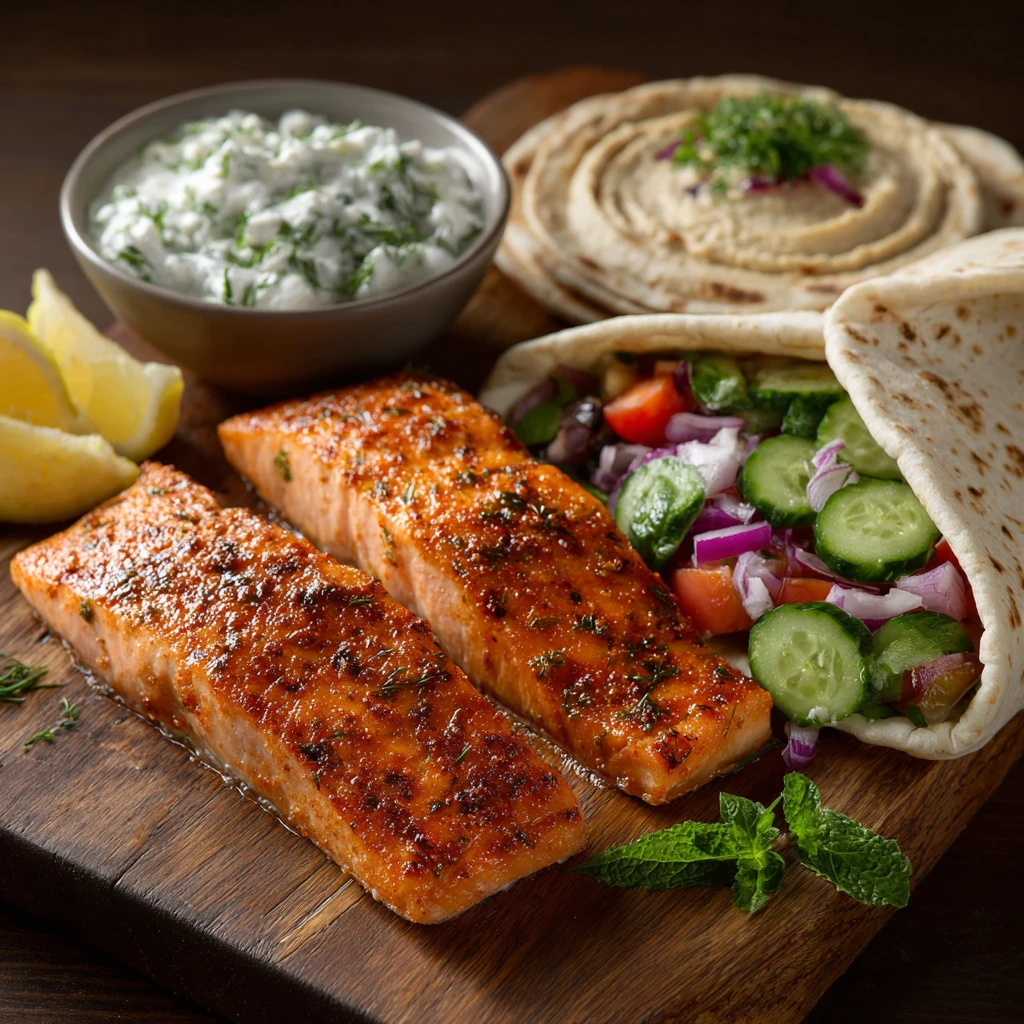Mediterranean Salmon Hummus Wraps