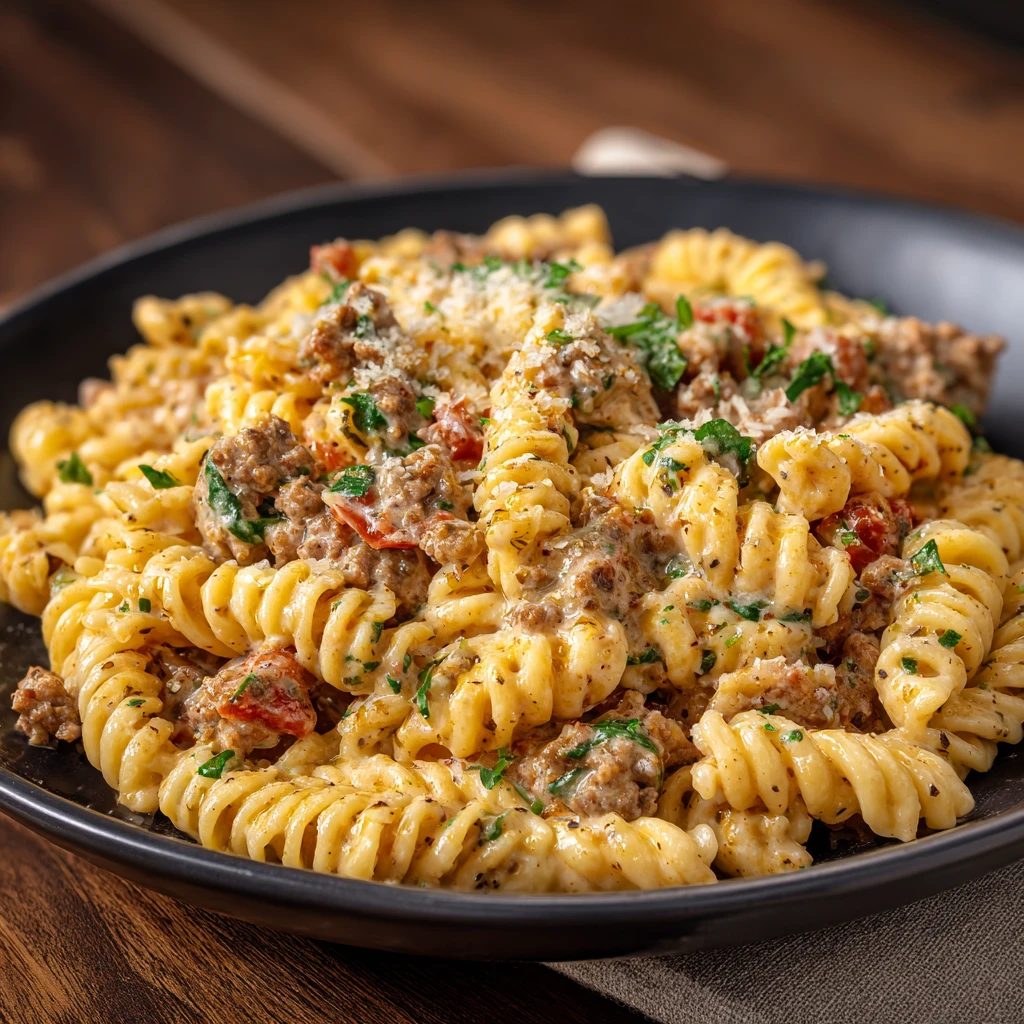 Ground Beef Creamy Tuscan Rotini