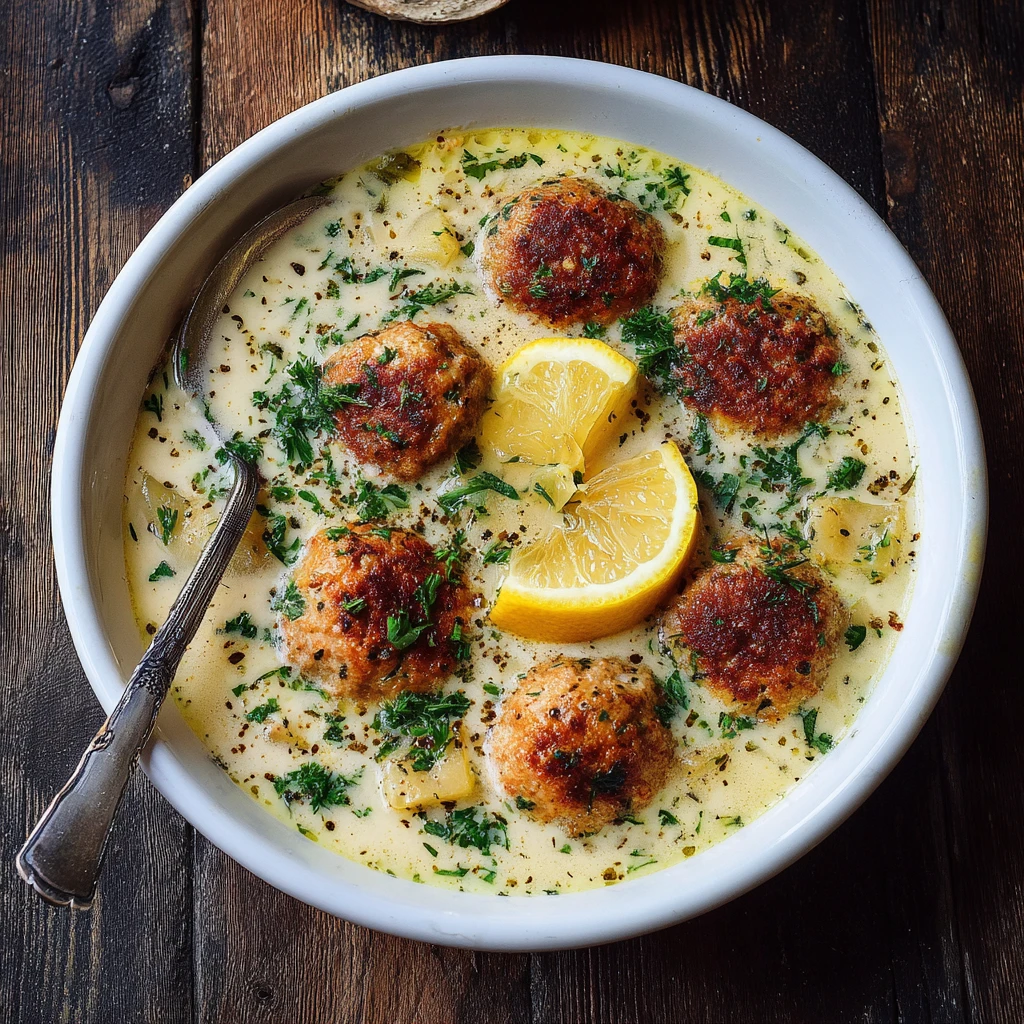 Greek Lemon Potato Meatball Soup