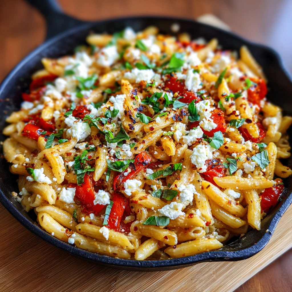 Roasted Red Pepper Feta Pasta Skillet