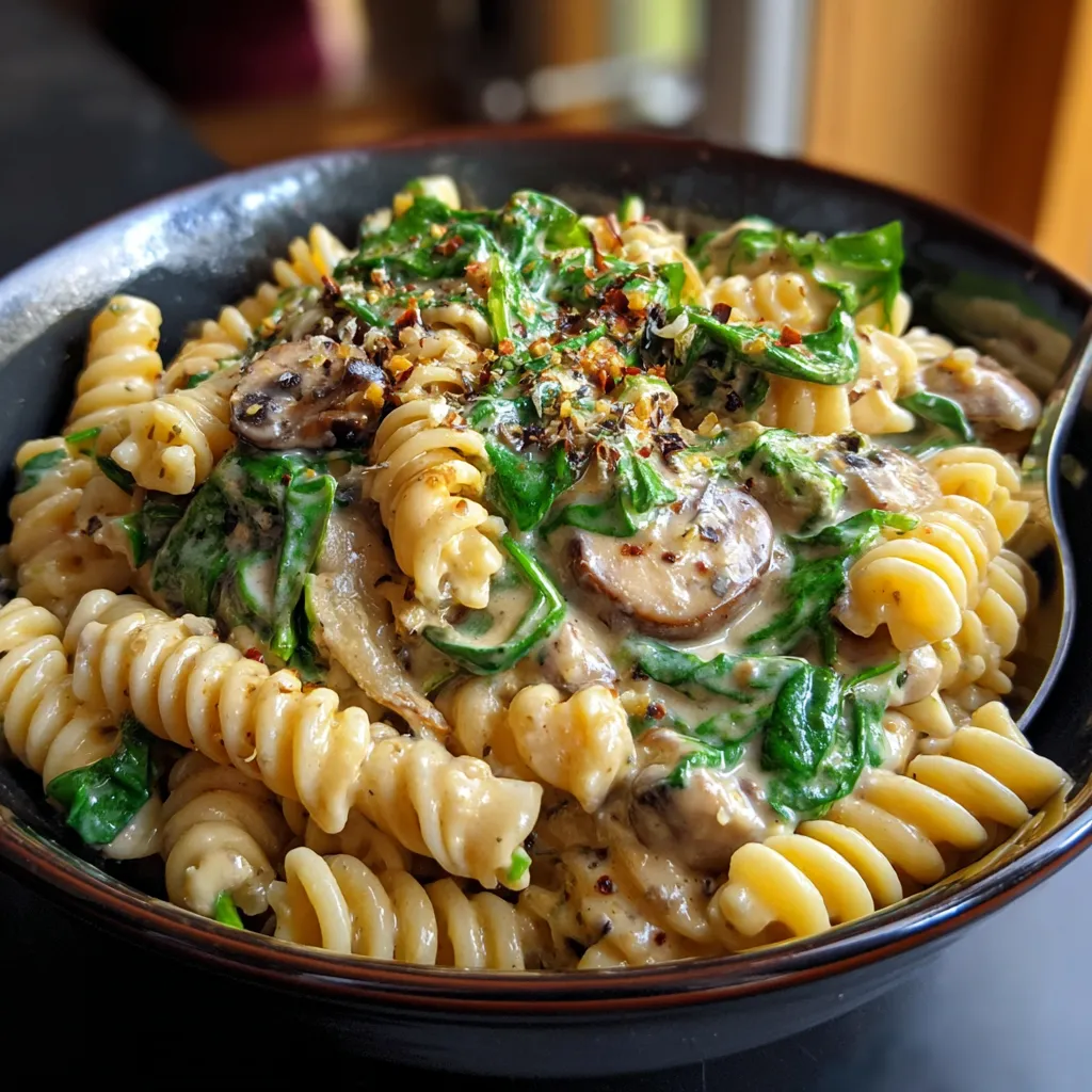 Dreamy Creamy Parmesan Spinach Mushroom Pasta Recipe
