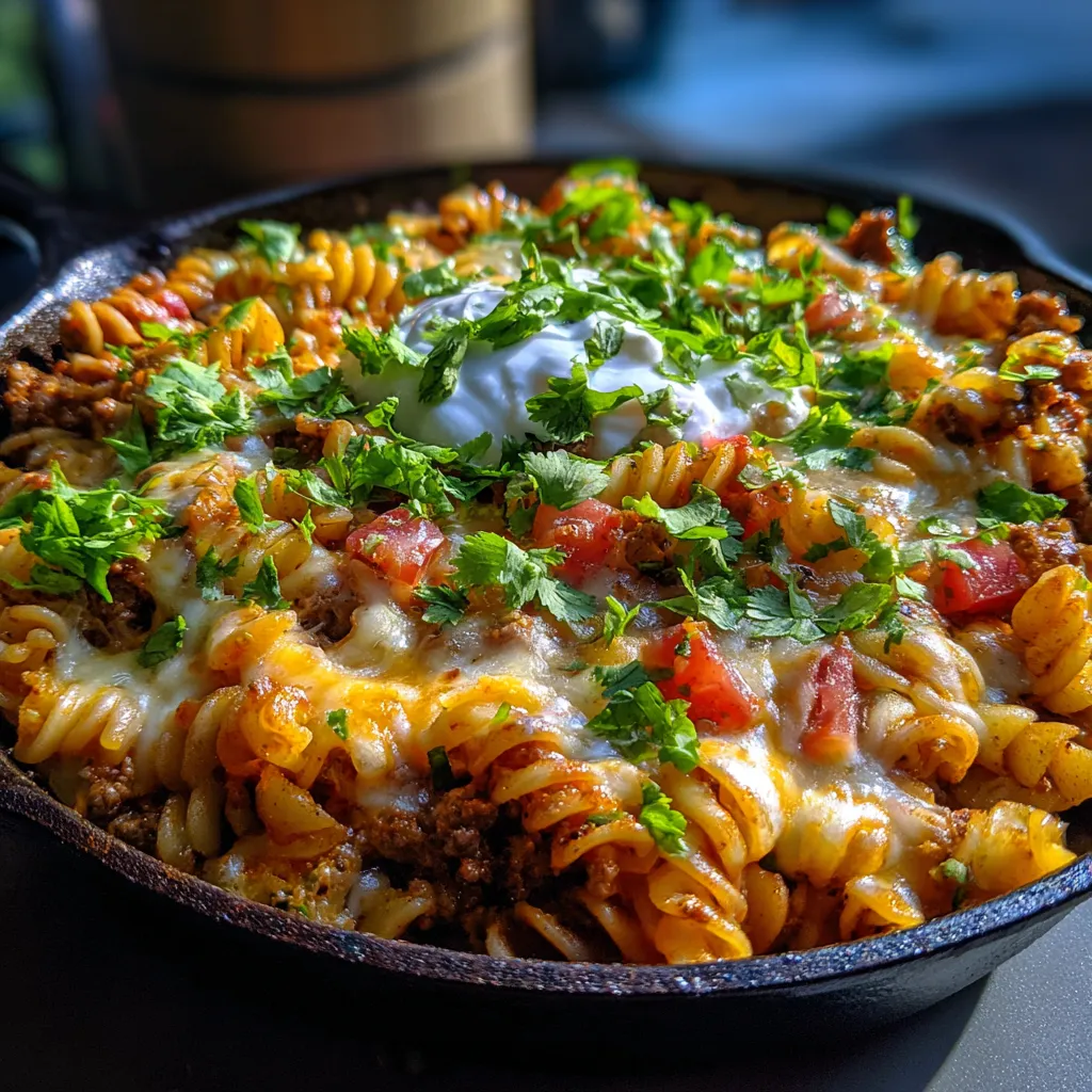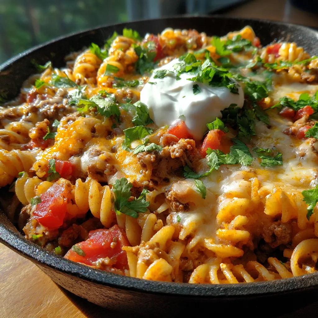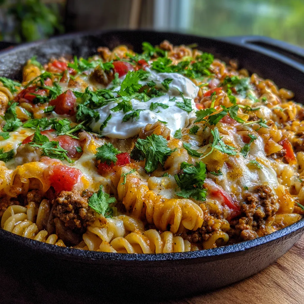 - Explosion of Flavor: This dish captures all the beloved, zesty, and savory flavors of your favorite tacos, infused into every bite of pasta. The seasoned ground beef, zesty tomatoes, and creamy sauce combine to create a taste sensation that’s both familiar and exciting. It’s a fiesta in your mouth!