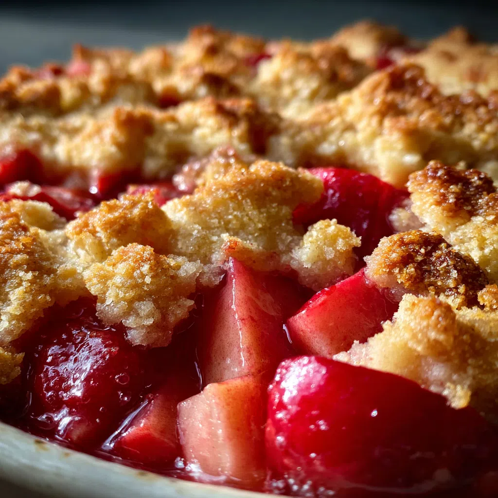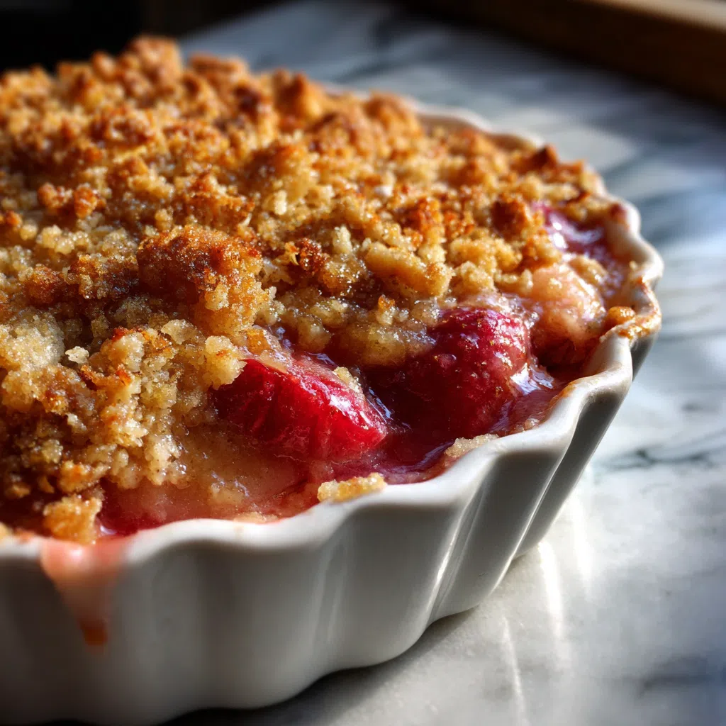 I still remember the first time I made this crisp with my grandmother in her cozy garden kitchen, surrounded by the vibrant red stalks of fresh rhubarb.