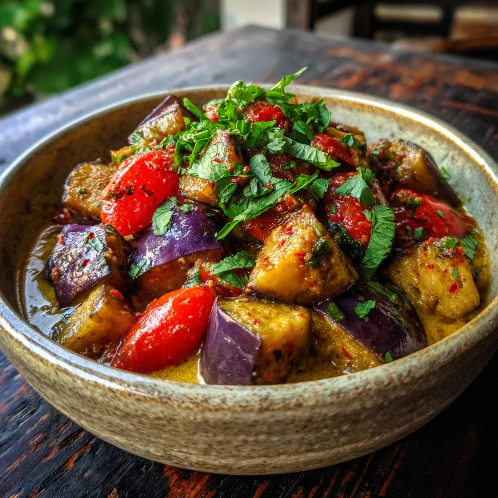 • Rich & Creamy Sauce: Made with velvety coconut milk and a medley of aromatic spices, the sauce is utterly luxurious. It’s balanced, deeply flavorful, and coats every piece of eggplant beautifully, making each bite an experience.