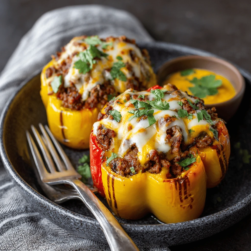 Cheesy Grilled Ground Beef Stuffed Peppers