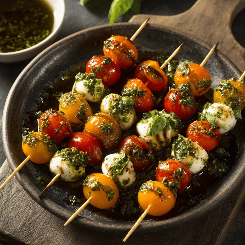 Mini Caprese Skewers with Pesto for Thanksgiving