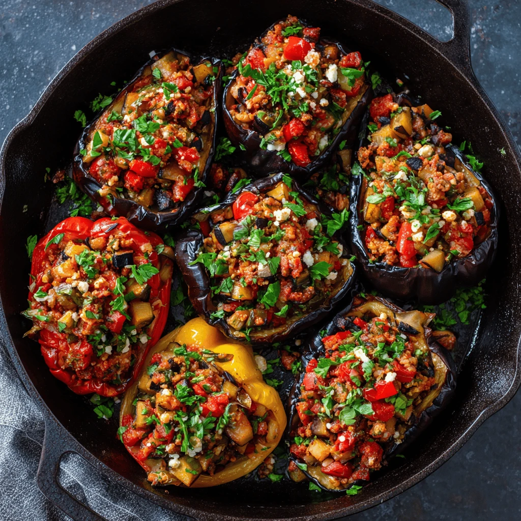 Low Carb Mediterranean Eggplant Stuffed Peppers