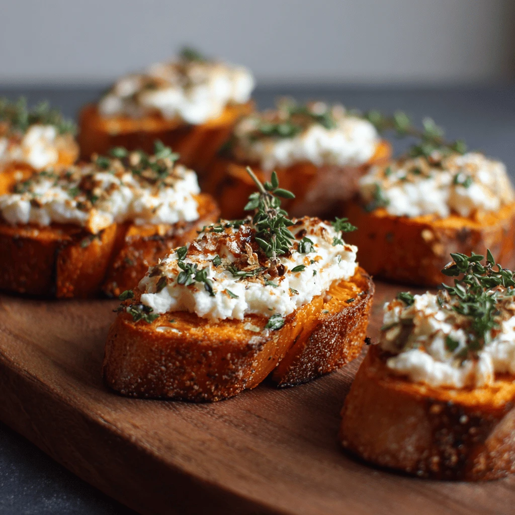 Sweet Potato Crostini with Goat Cheese and Thyme for Thanksgiving