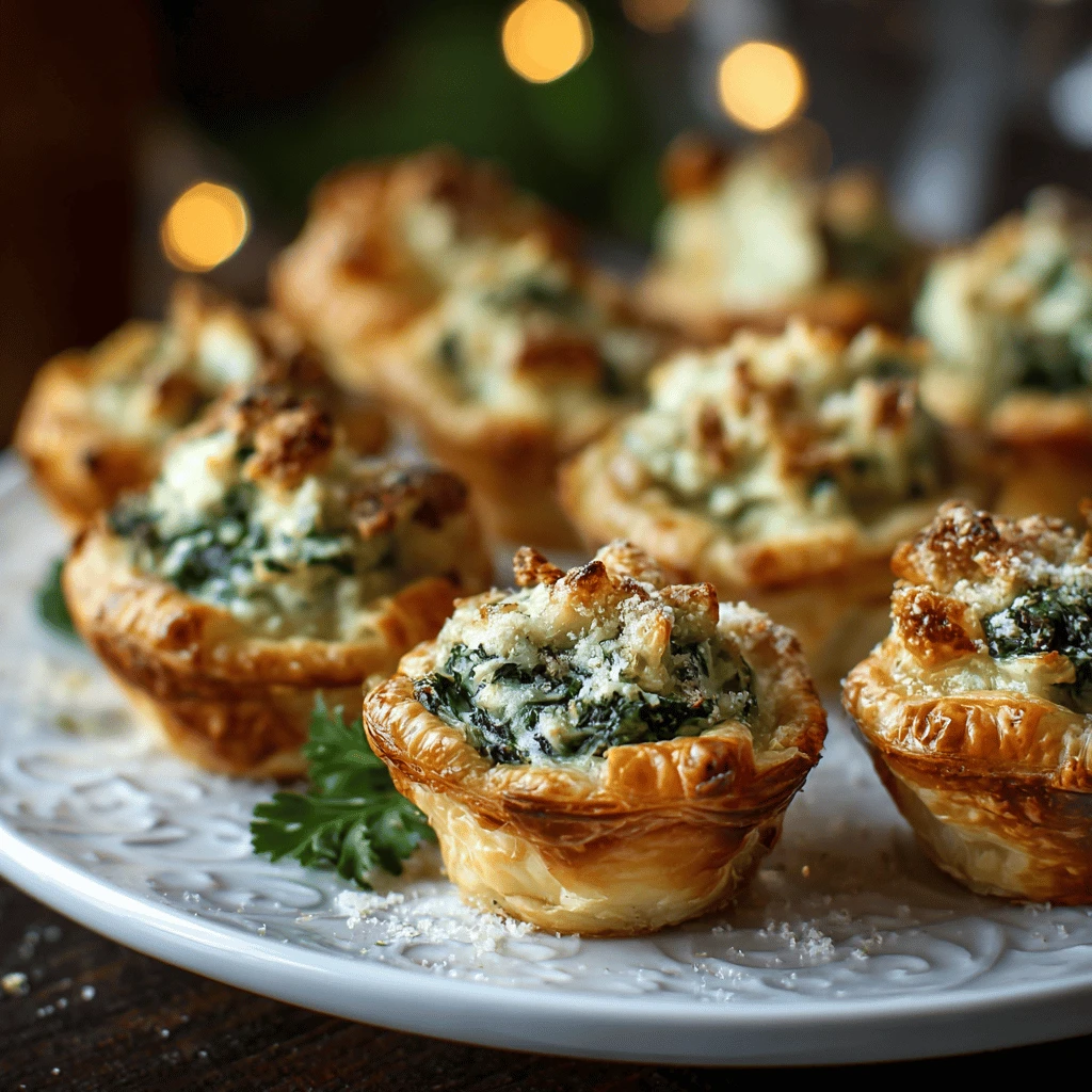 Spinach Artichoke Dip Mini Cups with Puff Pastry Thanksgiving Appetizers