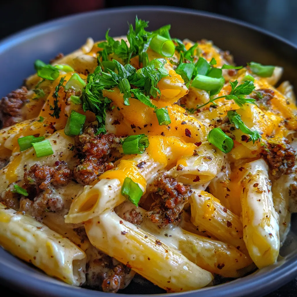 So there you have it, friends! The Easy Loaded Cheeseburger Alfredo Pasta Recipe is more than just a meal; it’s a culinary adventure that brings joy and comfort to your table with minimal effort. Whether it’s a busy weeknight or a cozy Sunday, this dish is sure to impress and satisfy everyone. Don’t forget to pin this recipe for later and share your creations with us! Happy cooking!
