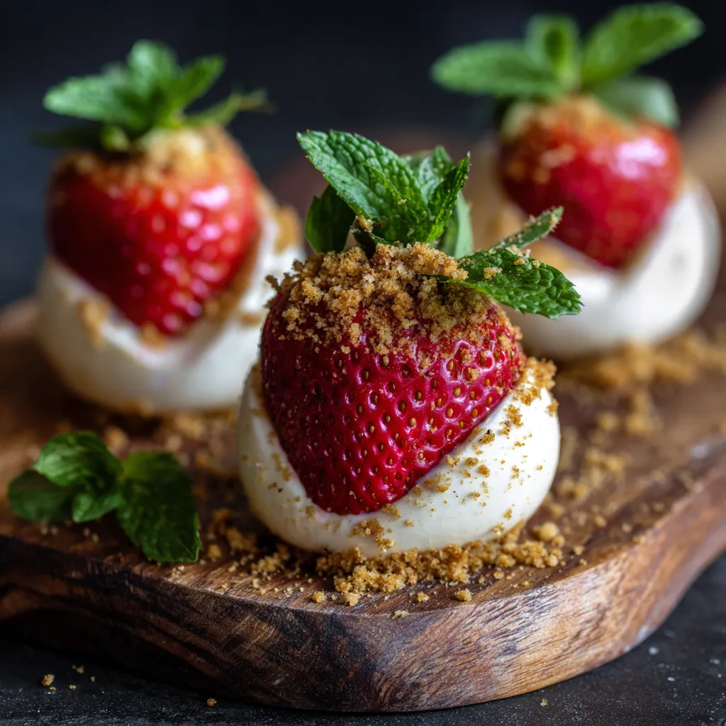 • Step 5 Sprinkle the tops of the filled strawberries generously with graham cracker crumbs. If desired, garnish with fresh mint leaves for an extra touch of color and freshness.