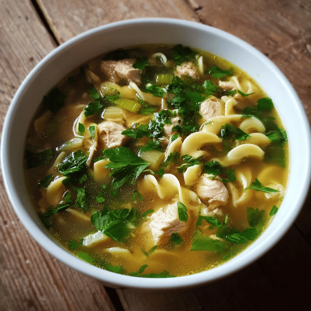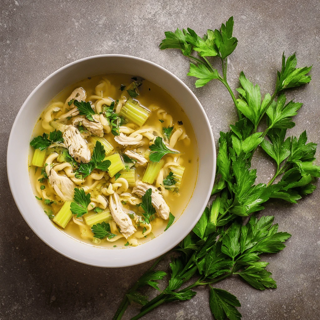 Chicken Noodle Soup with Celery and Fresh Parsley