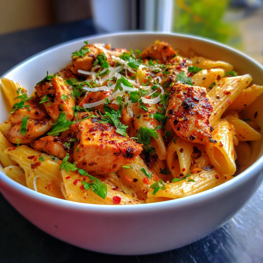 To make this recipe gluten-free, try substituting the pasta with a gluten-free alternative, such as zucchini noodles or rice noodles. For a protein swap, you could use shrimp or tofu instead of chicken. For a bold flavor twist, try adding some spicy red pepper flakes or smoky paprika to the sauce.