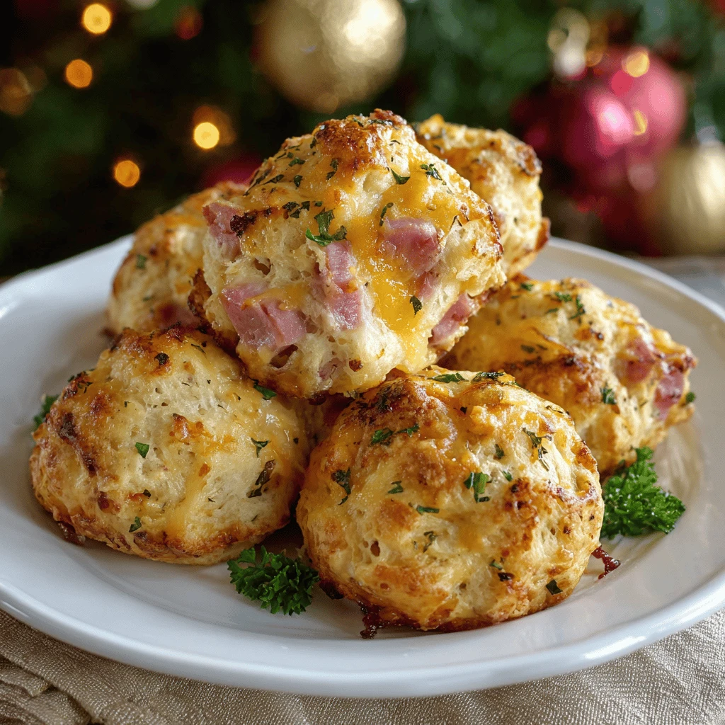 6. Place a spoonful of the ham and cheddar mixture in the center of each flattened biscuit.