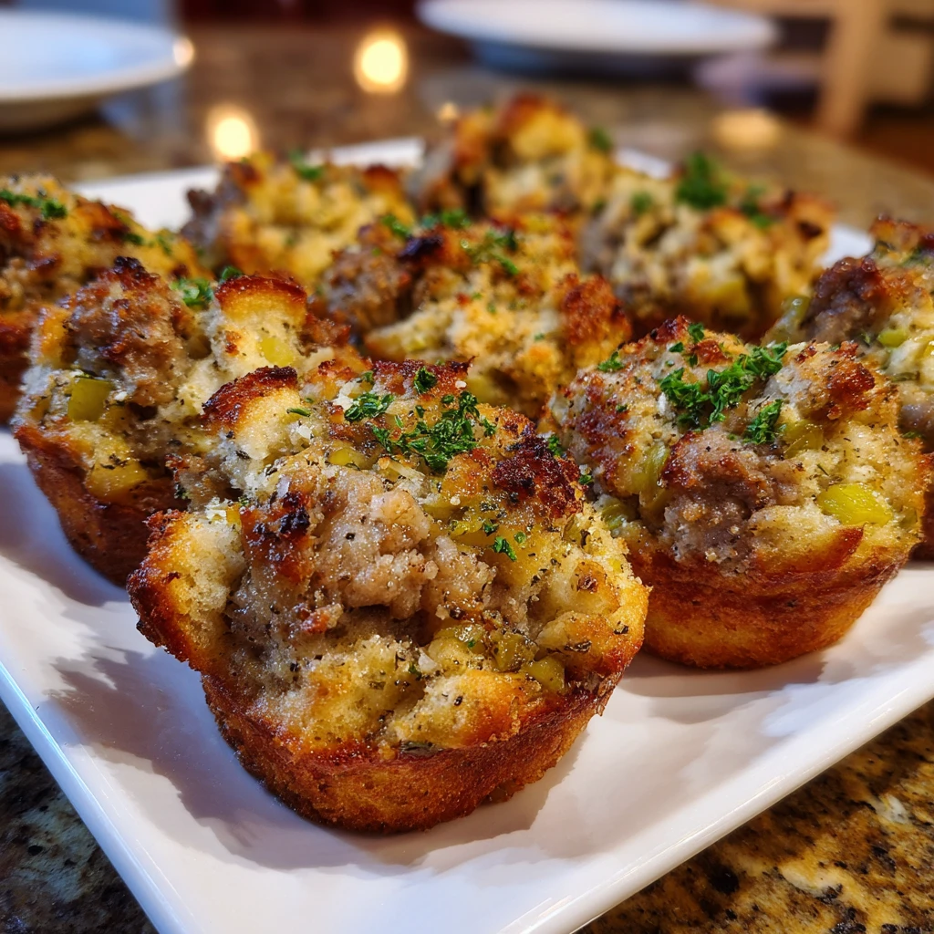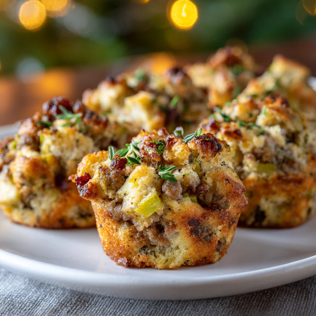 Arrange the stuffing muffins on a platter with fresh herbs. This adds a touch of elegance to your holiday table.