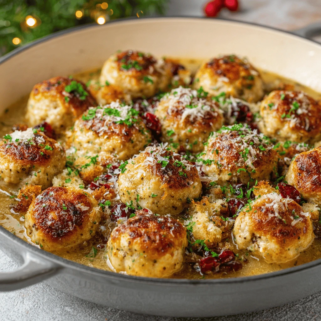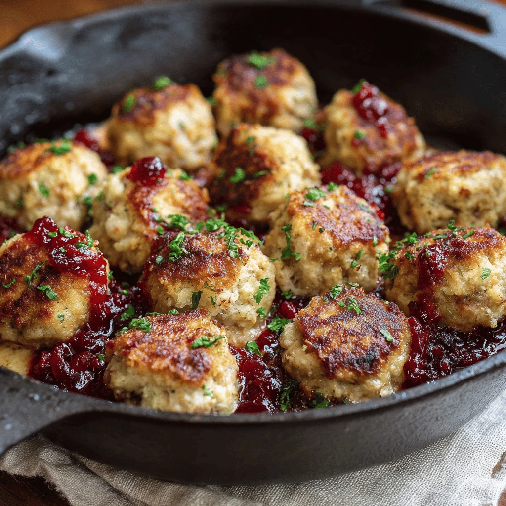 You can prepare the meatballs ahead of time. Store them uncooked in the refrigerator for up to 24 hours. Or freeze them for longer storage. If freezing, thaw completely before baking. The cranberry sauce and stuffing filling can also be prepped in advance. Simply assemble the meatballs just before cooking.