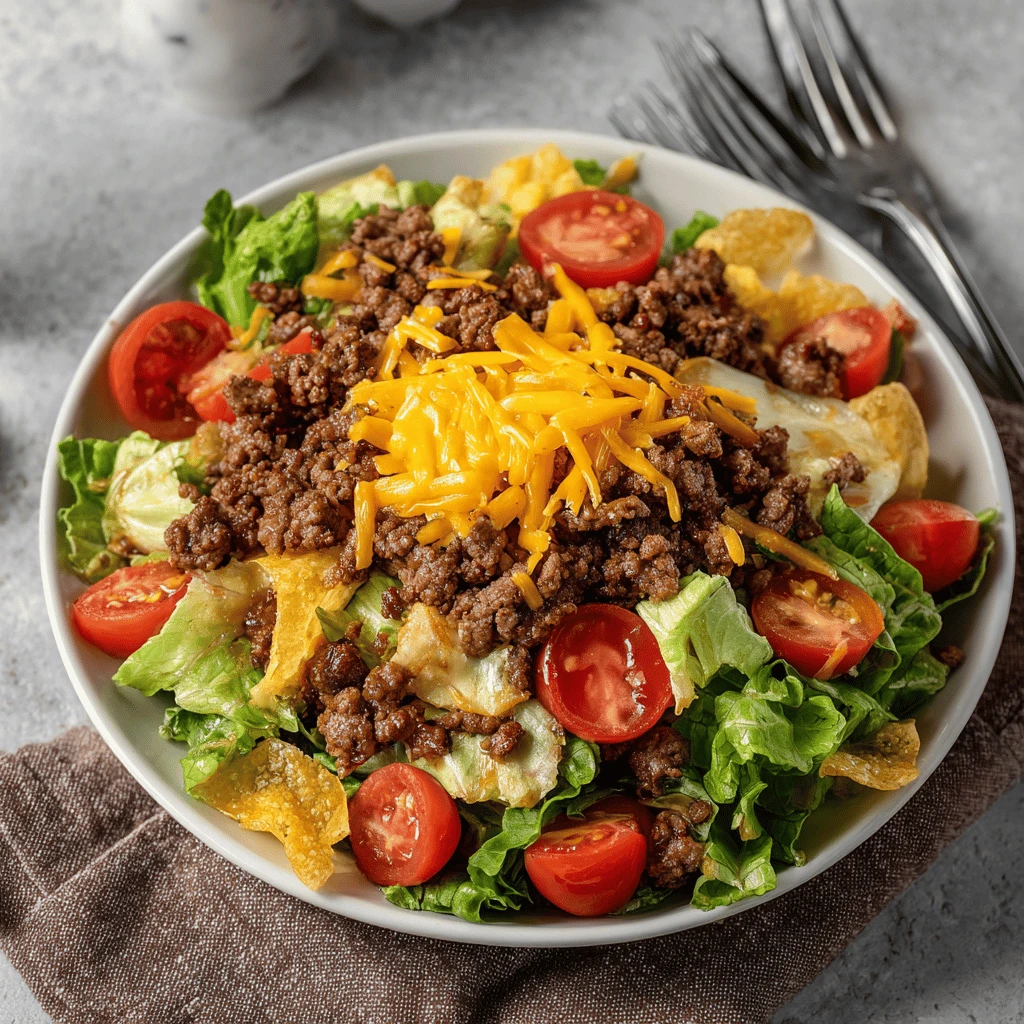 - Prepare Ingredients in Advance: Chop vegetables and cook the ground beef ahead of time for quick and easy salad assembly.