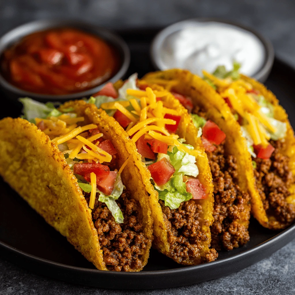 Think of it: all the savory goodness of seasoned ground beef, enveloped in a crunchy shell, topped with your favorite fixings. This recipe offers a fantastic way to elevate your taco game and impress family and friends with minimal effort.