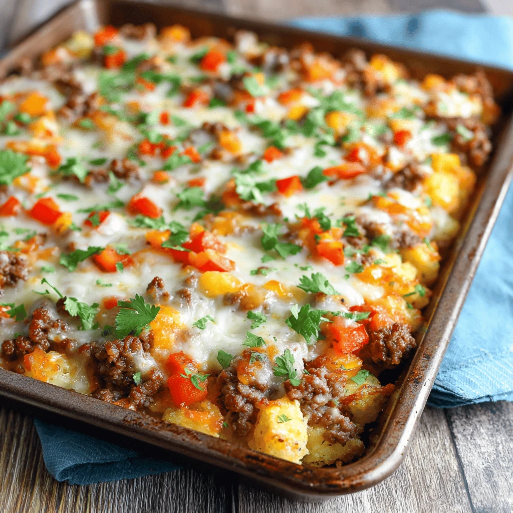 Follow these instructions for perfectly cooked Comfort Food Sheet Pan Ground Beef Casserole.