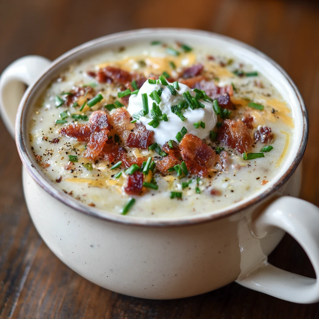 12. Serve hot, garnished with remaining bacon, fresh chives, and a dollop of sour cream, if desired.