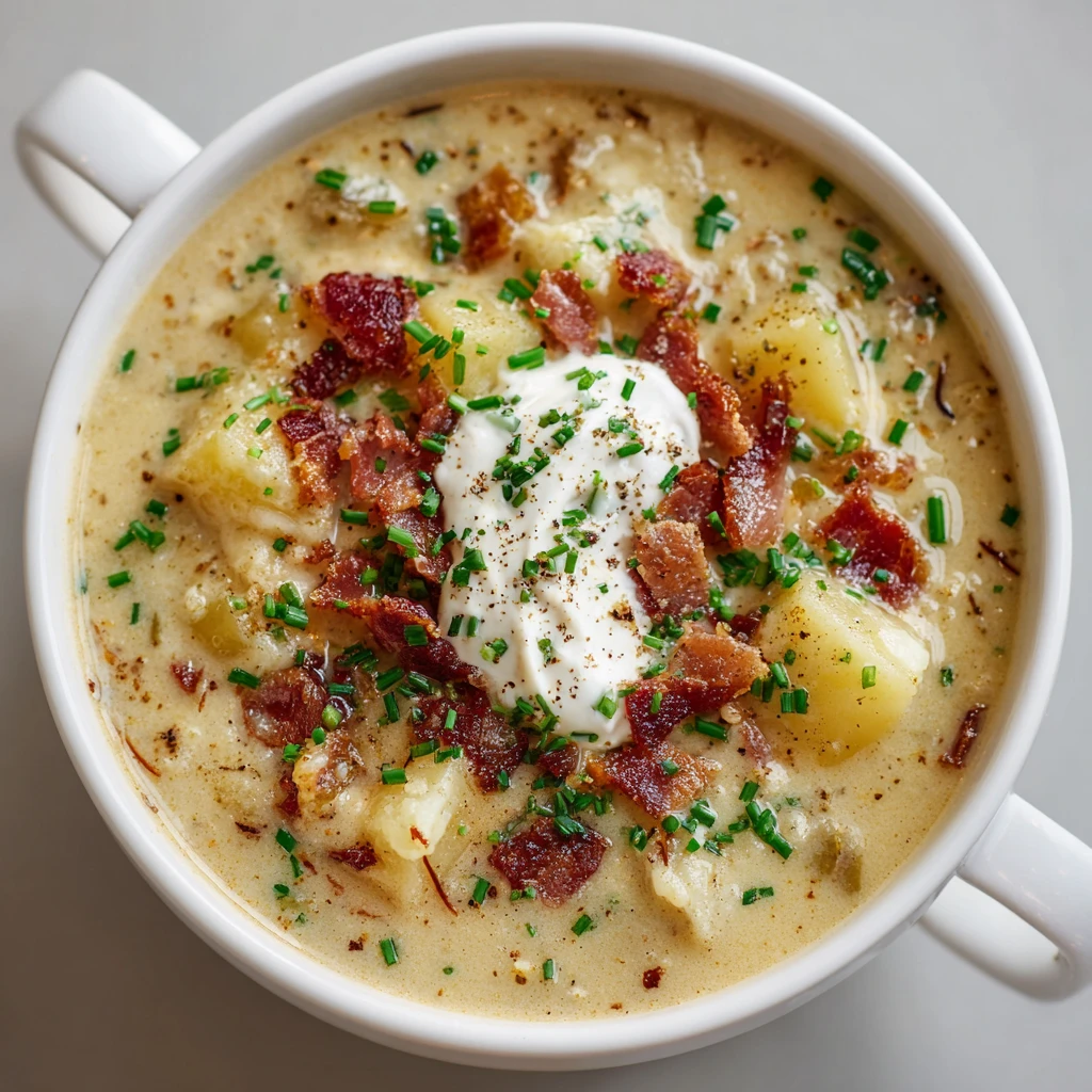The classic garnishes for this soup are crumbled bacon, chopped chives, and a dollop of sour cream. Other options include shredded cheddar cheese, green onions, or a swirl of hot sauce. A sprinkle of paprika adds a pop of color.