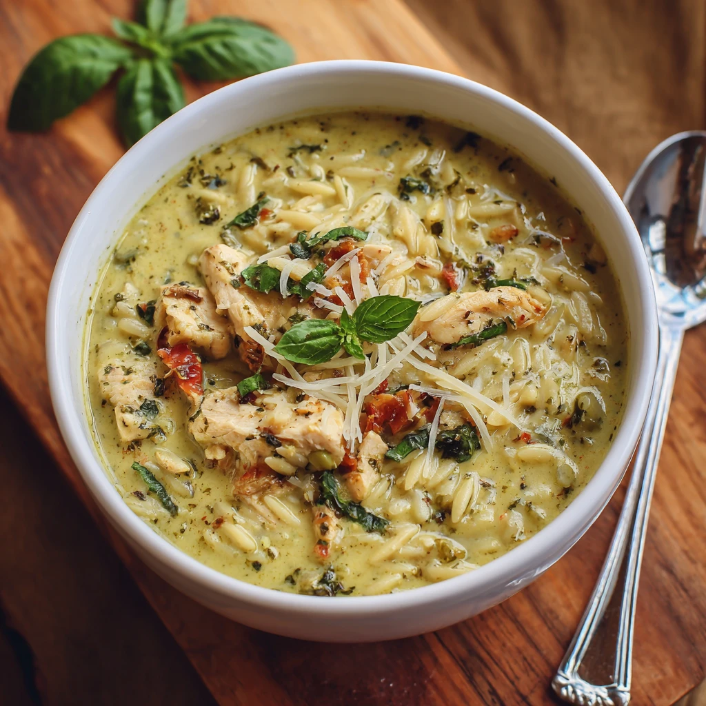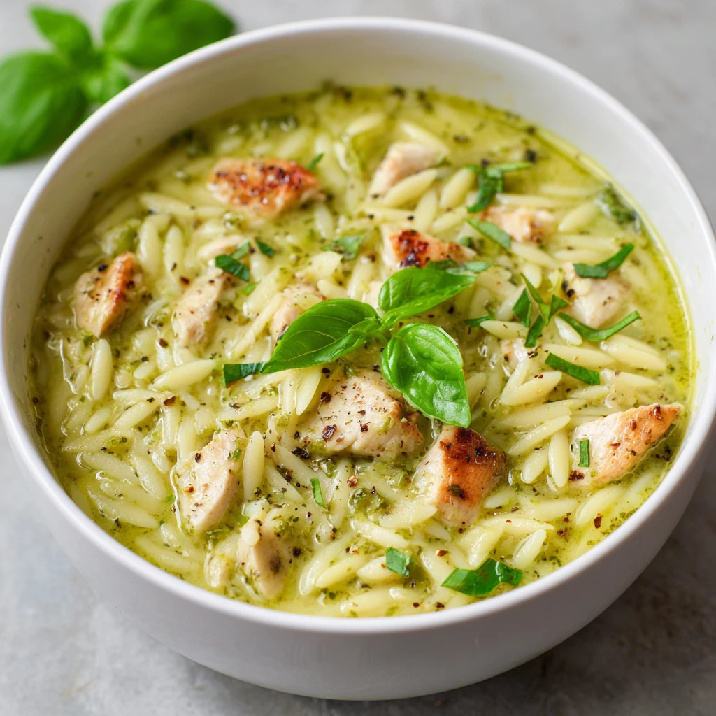Creamy Pesto torso Orzo Soup