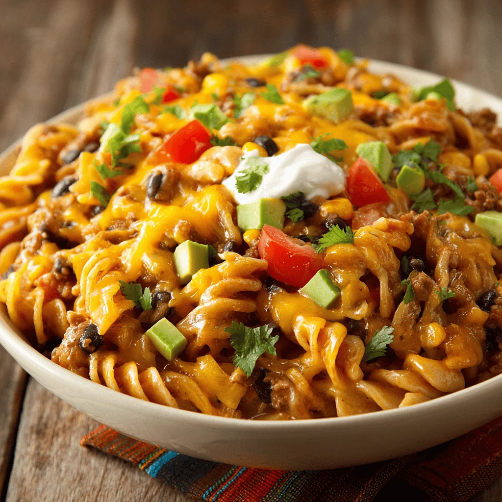 This Creamy Taco Ground Beef Enchilada Pasta recipe is a guaranteed crowd-pleaser. It combines the best flavors of tacos and enchiladas into one comforting and satisfying dish.