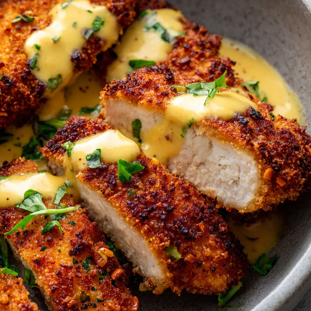 There you have it! A recipe that combines the familiar crunch of pretzels with juicy chicken and a dreamy, tangy cheese sauce. It’s truly a showstopper that’s surprisingly simple to make. Whether you’re making it for a special occasion or just a cozy night in, this Pretzel Chicken with Mustard Cheddar Sauce is guaranteed to bring smiles to the table.