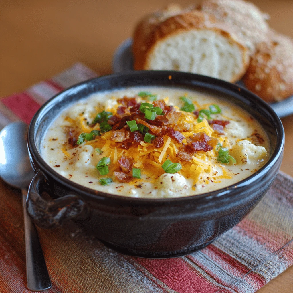 - Loaded Cauliflower Chowder: Add crumbled bacon, shredded cheese, sour cream, and chopped chives.
