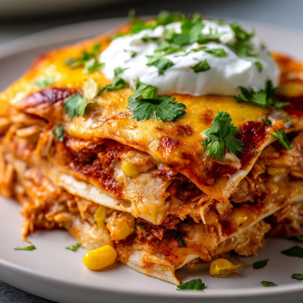 - Unbeatable Flavor: Layers of tender shredded chicken, rich enchilada sauce, soft tortillas, and melty cheese cook down to create an explosion of savory, slightly spicy, and deeply satisfying flavors. Each bite is a harmonious blend that will have everyone asking for seconds.