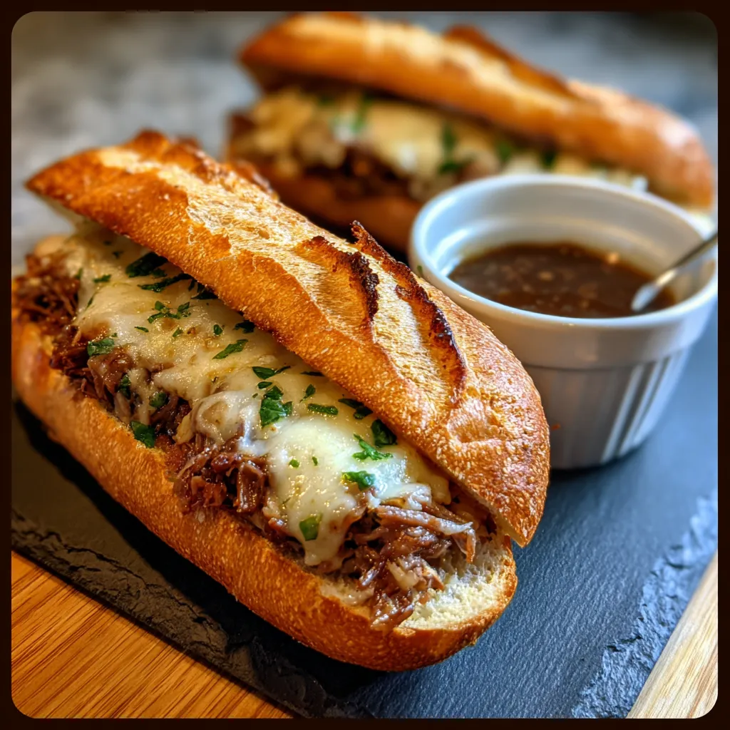 This isn’t just any sandwich; it’s an experience. Imagine succulent, slow-cooked beef, infused with savory herbs and rich beef broth, piled high on a toasted baguette with melted provolone cheese. And of course, the star of the show – that incredible, savory au jus, perfect for dipping. This recipe truly transforms a simple weeknight into a special occasion, delivering maximum flavor with minimal effort, making it the ultimate easy dinner and comfort food staple.
