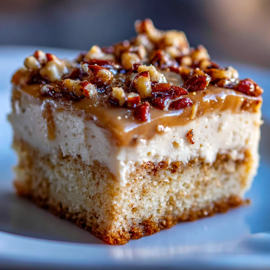 • Textural Delight in Every Forkful: This isn’t a one-note dessert! You get the soft, yielding texture of the cake, which is made extra moist by soaking up that decadent praline sauce. Then, there’s the smooth, creamy layer of homemade frosting, adding another layer of velvety bliss. Finally, the generous sprinkling of crunchy, toasted pecans on top provides that satisfying pop of texture that elevates the entire experience. It’s a symphony for your taste buds.
