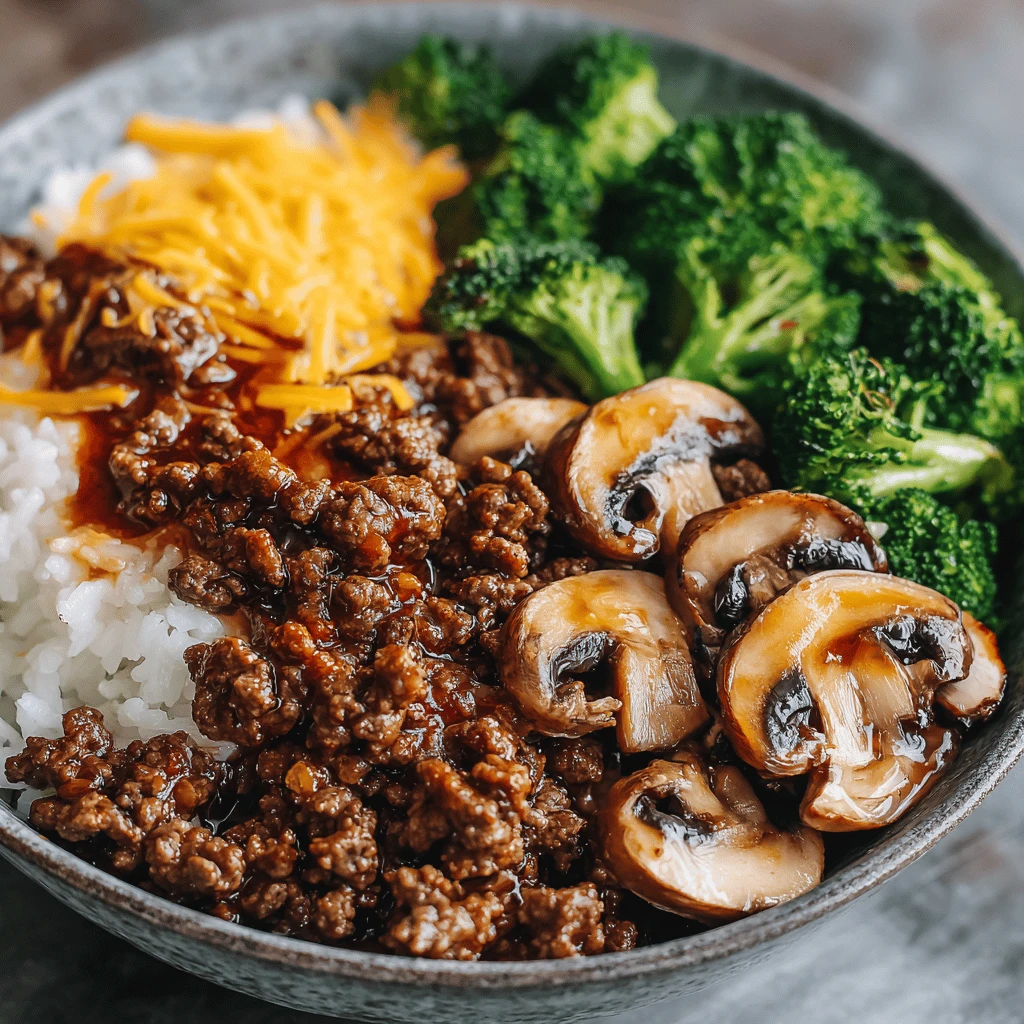 - Asian-Inspired Bowl: Season the ground beef with soy sauce, ginger, and garlic, and top with sesame seeds, green onions, and teriyaki sauce.