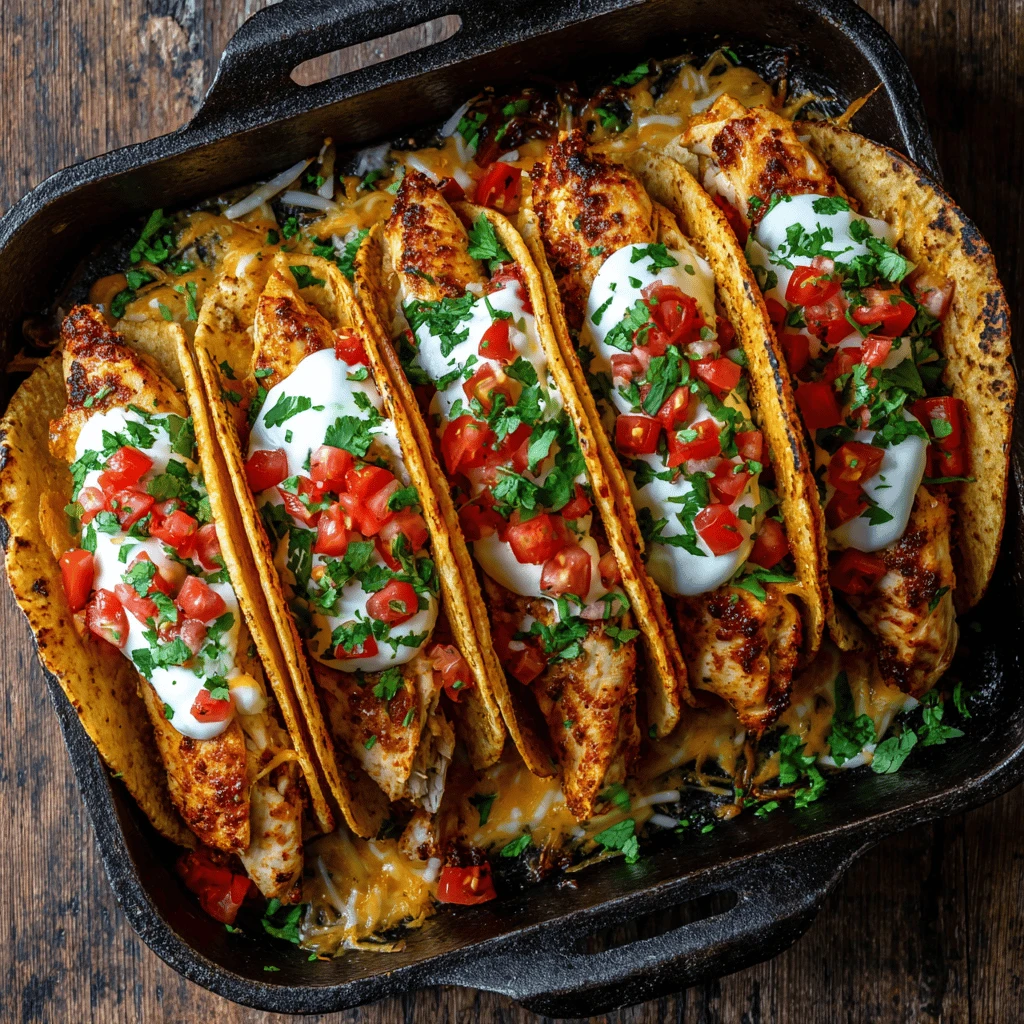 - Chicken Fajita Tacos: Add sliced bell peppers and onions to the baking dish along with the chicken, and use a fajita seasoning mix instead of taco seasoning.