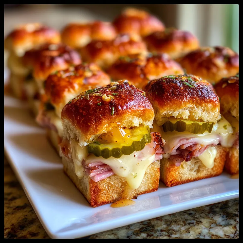 This recipe isn’t just about feeding a hungry crowd; it’s about creating an experience. Imagine soft, sweet Hawaiian rolls piled high with savory slow-roasted pork, tangy pickles, and melty Swiss cheese, all kissed with a buttery, garlicky mustard glaze. It’s a twist on a classic Cuban sandwich that’s been family-tested and unanimously declared a favorite. Perfect for game day, potlucks, or just a cozy night in, these sliders are unbelievably simple to assemble but deliver on big, bold flavors.