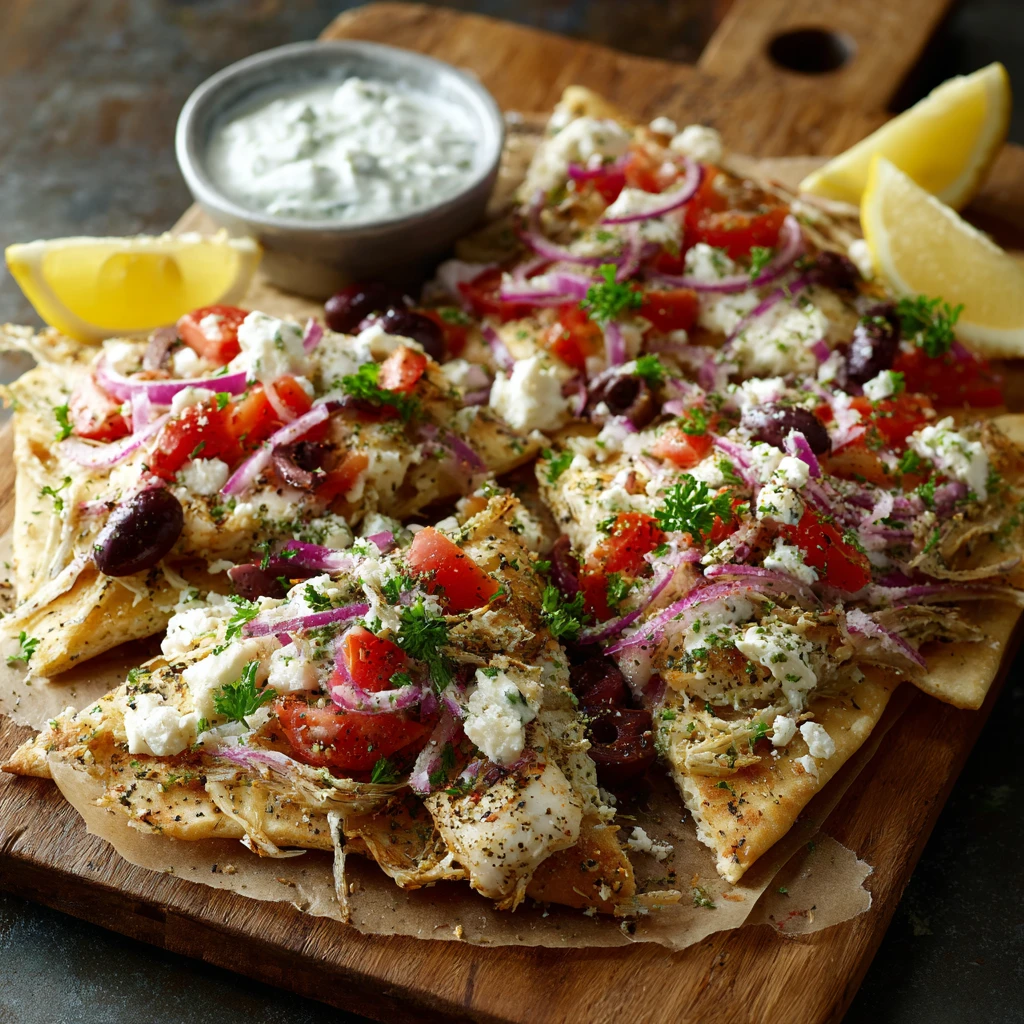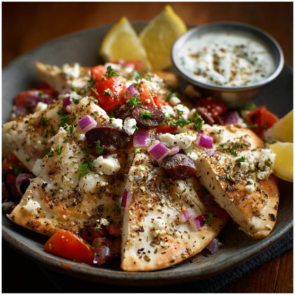 Easy Greek fillet Pita Nachos Dinner Recipe
