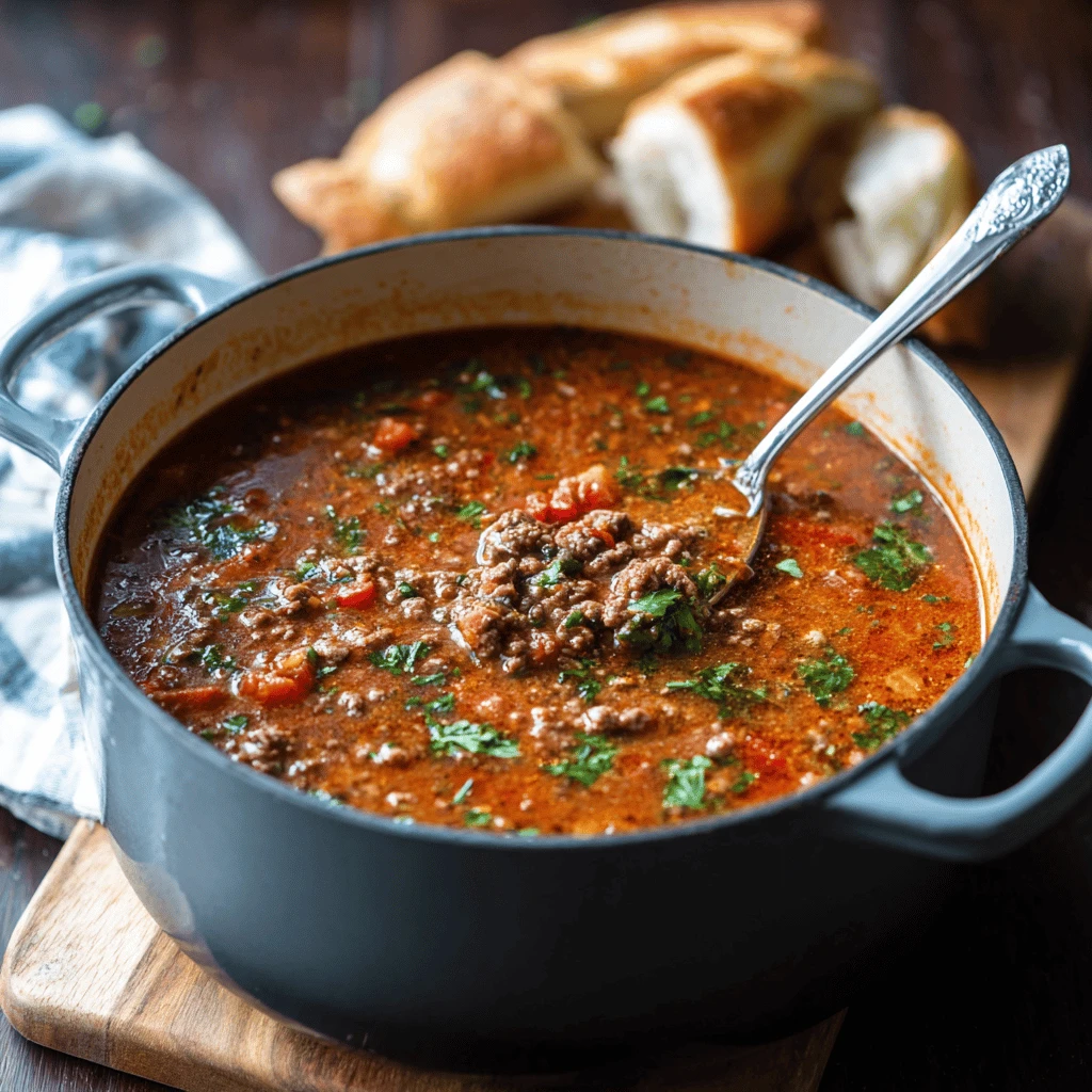 - Can I make this soup in a slow cooker? Absolutely! Brown the ground beef and sauté the vegetables in a skillet first. Then, transfer everything to a slow cooker, add the remaining ingredients, and cook on low for 6-8 hours or on high for 3-4 hours.