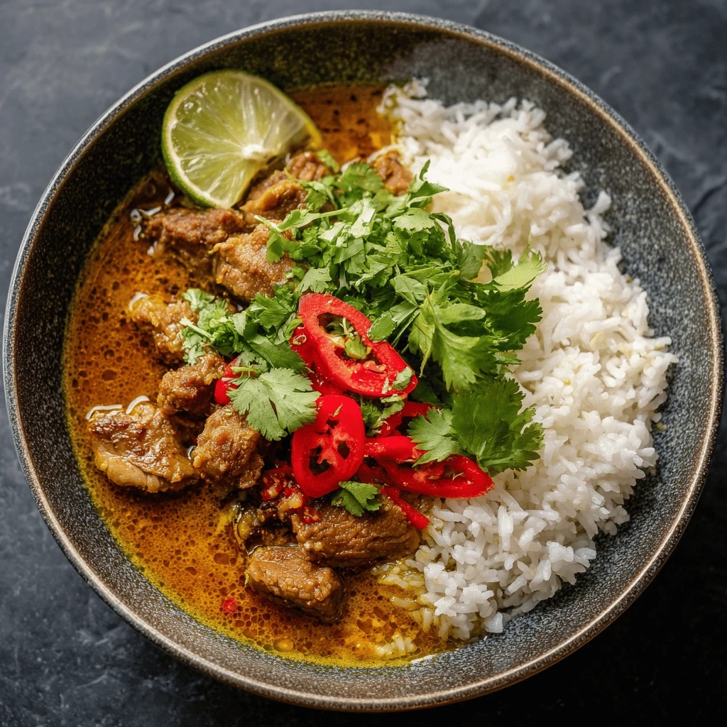 6. Serve: Serve hot over cooked rice, garnished with fresh cilantro.