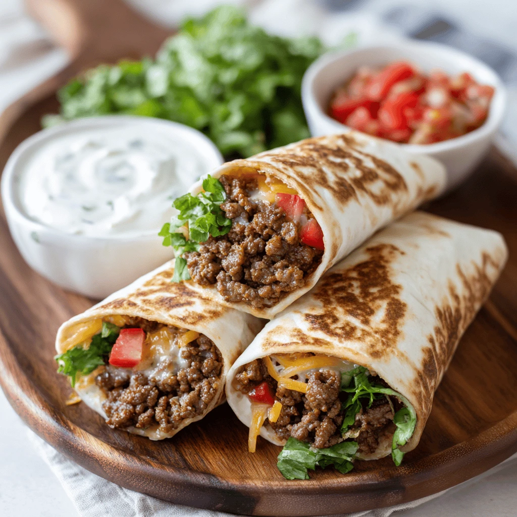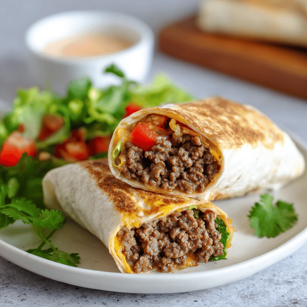 Drain any excess grease from the ground beef filling and avoid overfilling the wraps. Warming the tortillas before filling can also help prevent them from becoming soggy.
