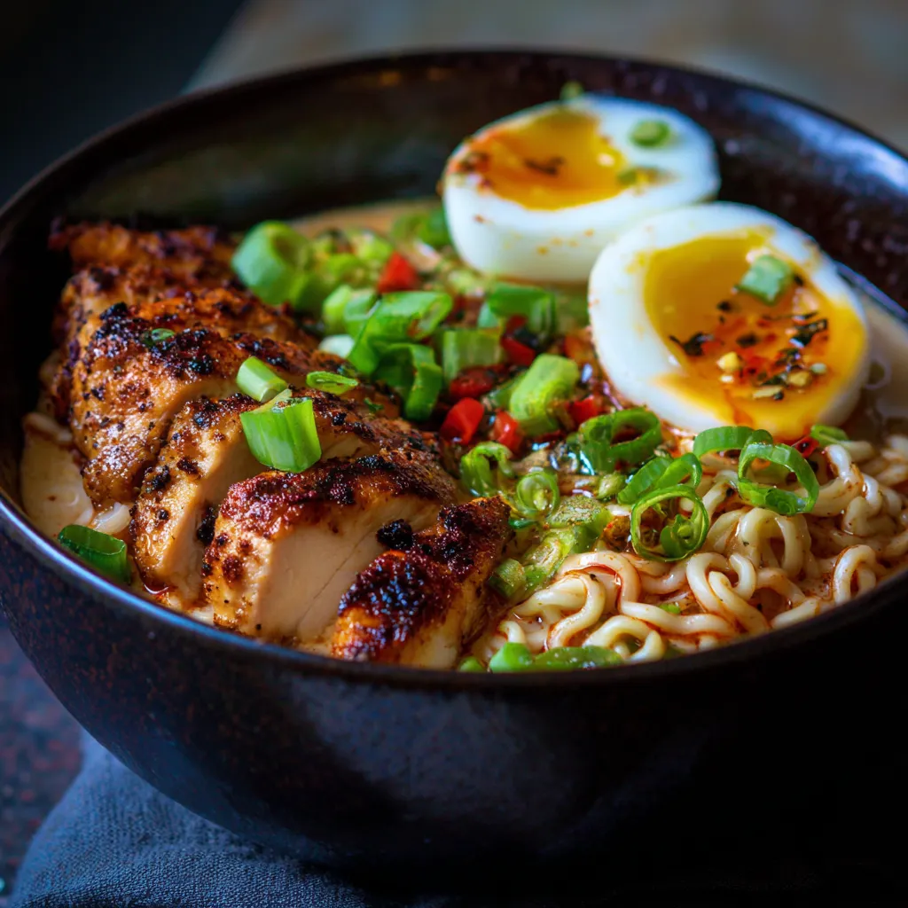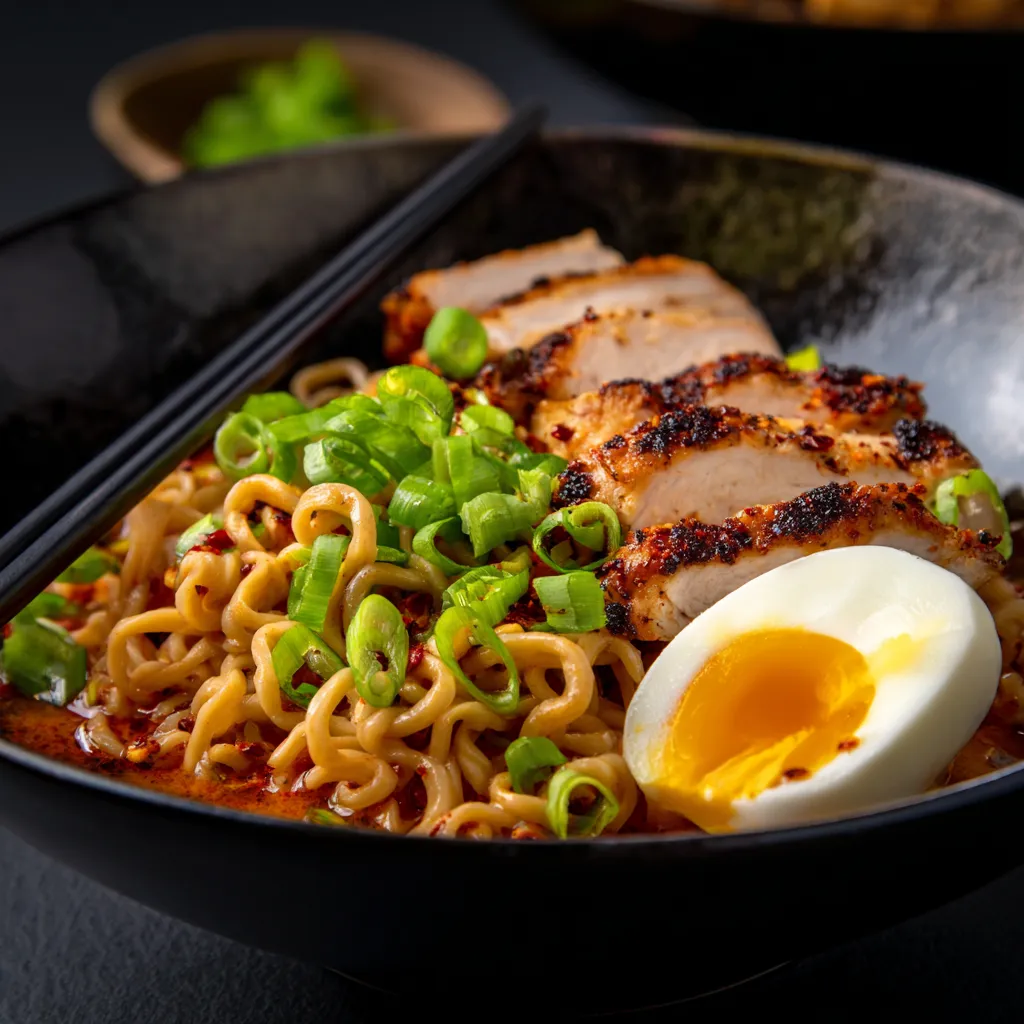 Savor the Heat: Fiery Chicken Ramen with Creamy Garlic Sauce (Your New Favorite Weeknight Meal!)