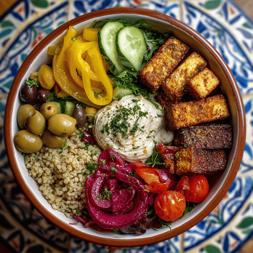 Garnish your Mediterranean Tofu Bowl with a sprinkle of fresh parsley or dill for a pop of color and freshness. A drizzle of extra olive oil or a squeeze of lemon juice can further enhance the flavors. For an extra crunch, consider adding toasted pine nuts or chopped almonds.