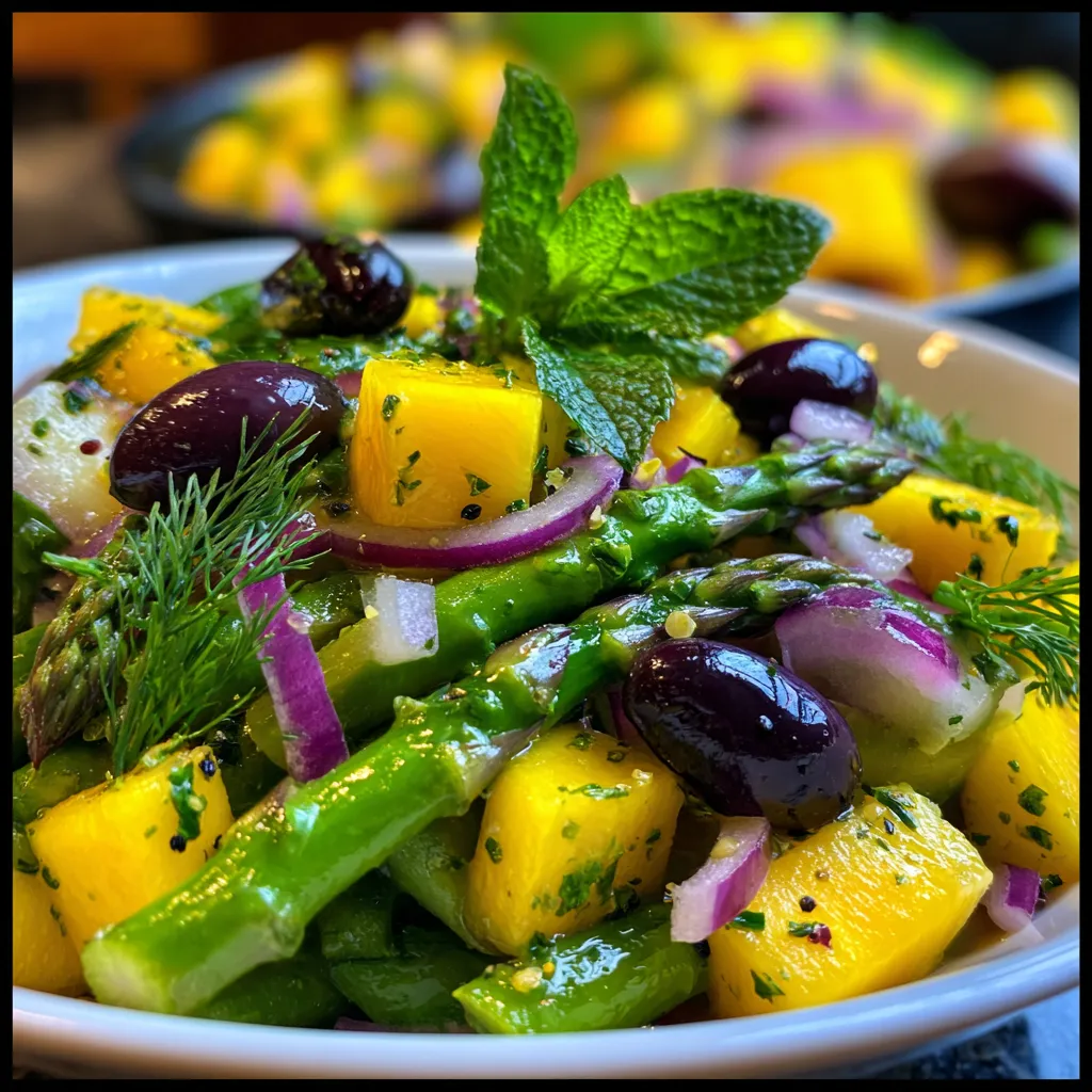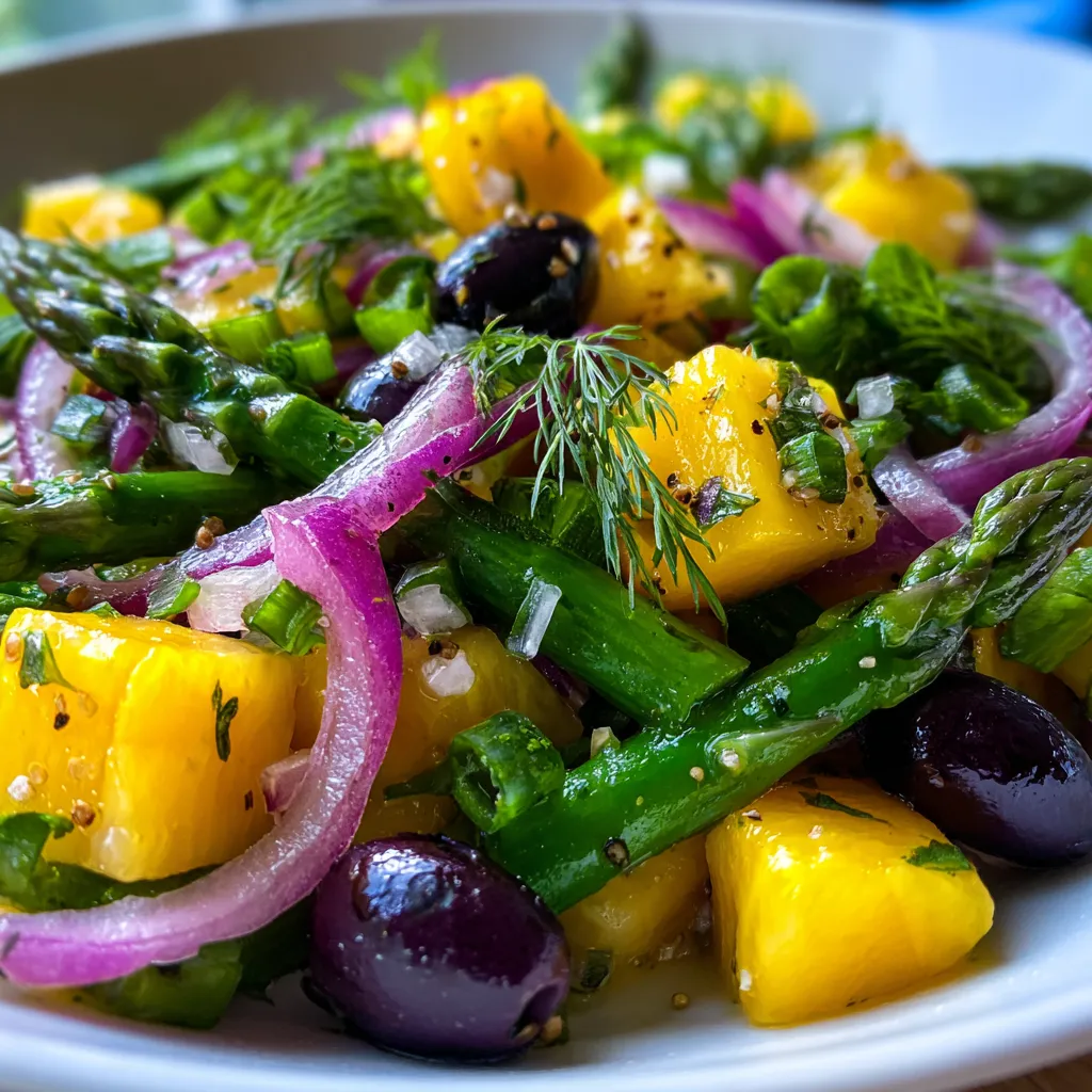 Vibrant Greek Asparagus Salad with Olive & Mango Dressing