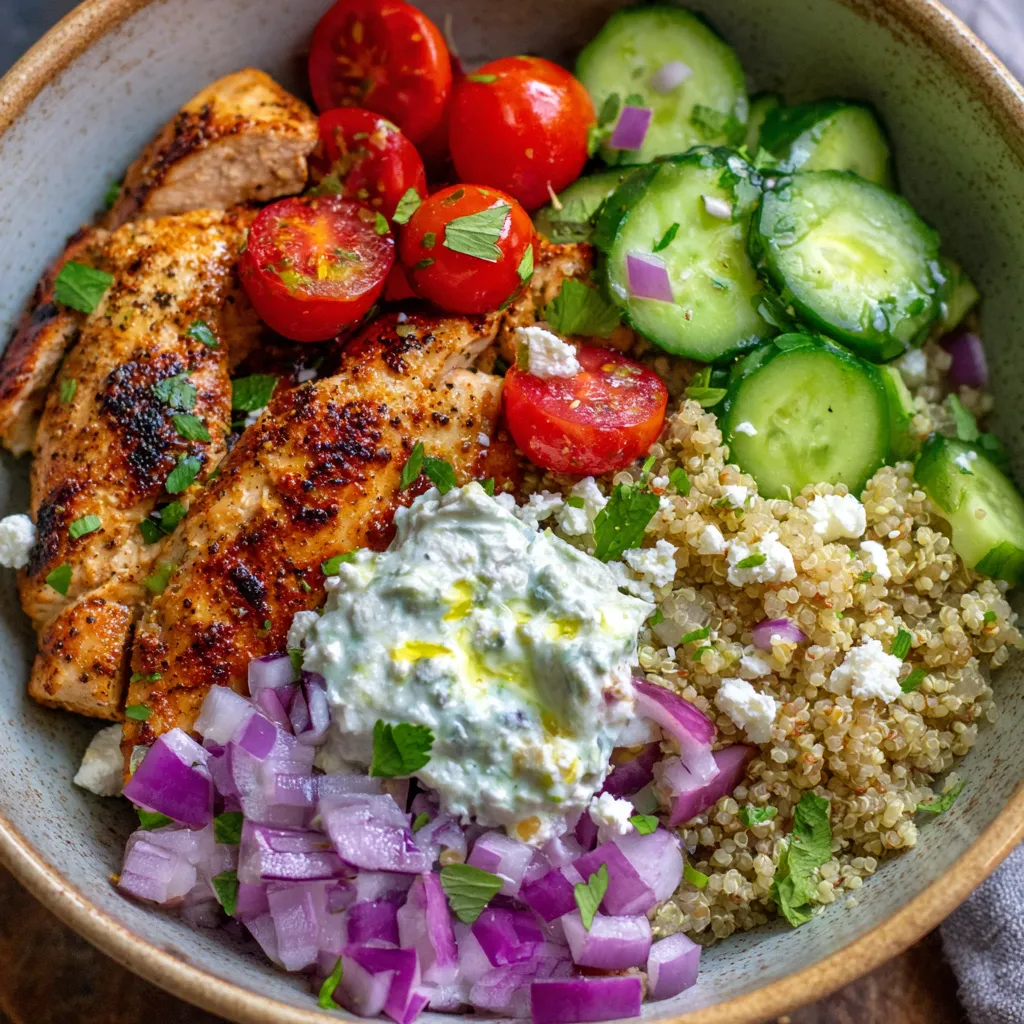 Imagine tender, perfectly seasoned chicken, crisp veggies, creamy tzatziki, and savory feta, all ready to assemble in minutes. These flavor-packed lunch or dinner bowls are a testament to how simple, wholesome ingredients can transform your meal routine. Get ready to fall in love with your new go-to healthy meal prep hero!