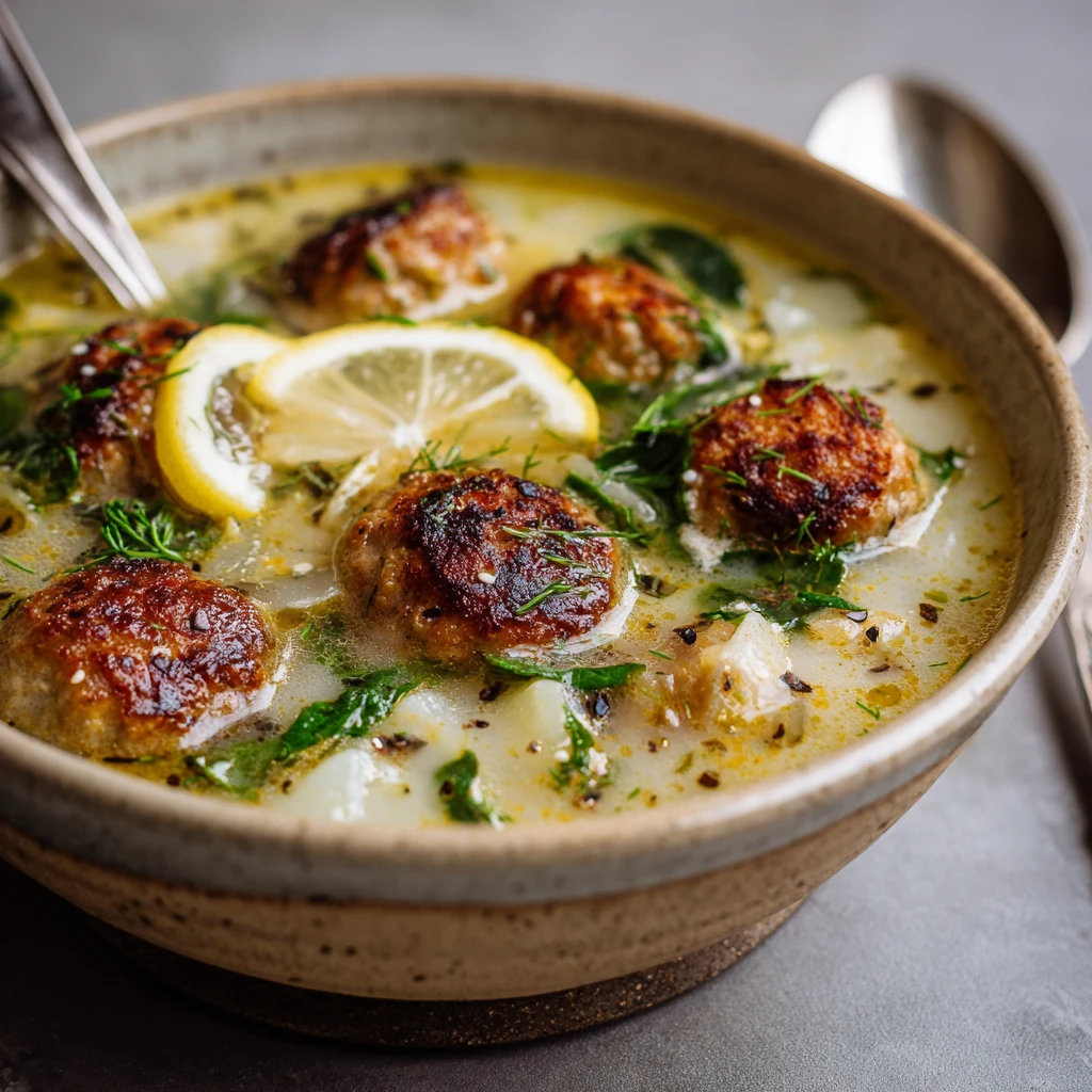 Greek Lemon Potato Meatball Soup