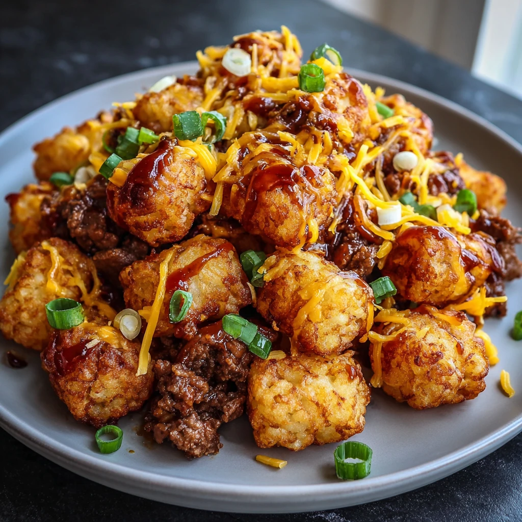 Ground Beef Cheesy BBQ Tater Tots