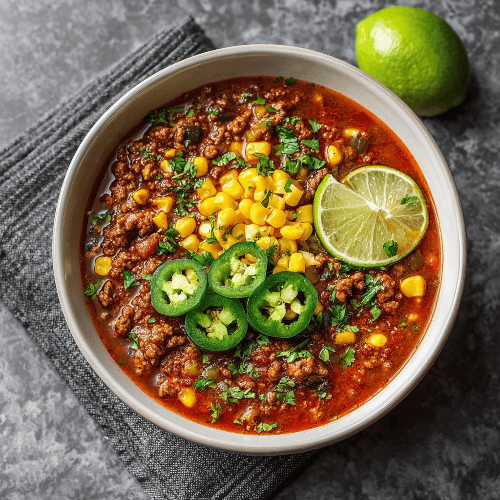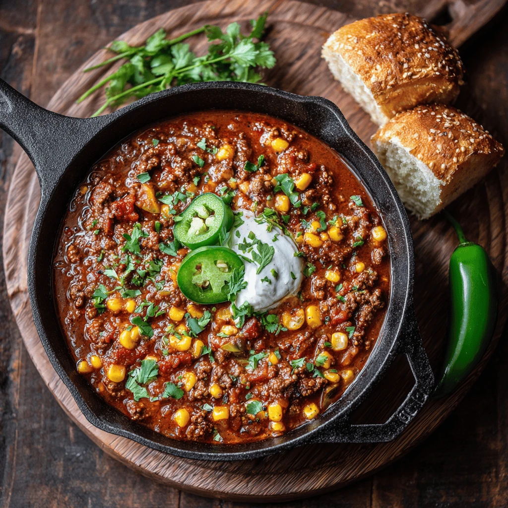 Ground Beef Chili with Corn and Jalapeños